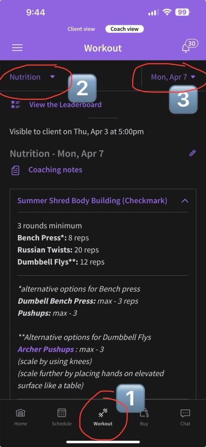 - Select Program "dropdown" in upper left corner (May say "CrossFit" or "Bootcamp") & select "Nutrition"